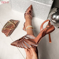 طقم حقائب وأحذية إيطالية TX71 لحفلات السهرة بالحجارة وحقائب إيطالية مطابقة